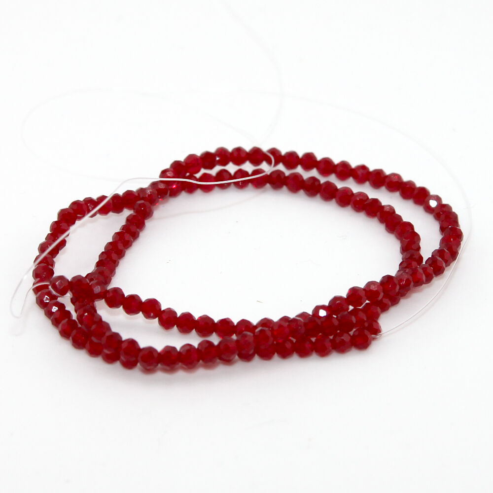 1.5mm x 2.5mm Transparent Glass Rondelle - 38cm Strand - Dark Red