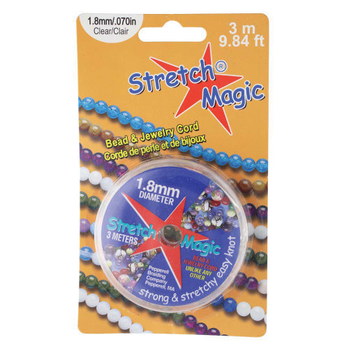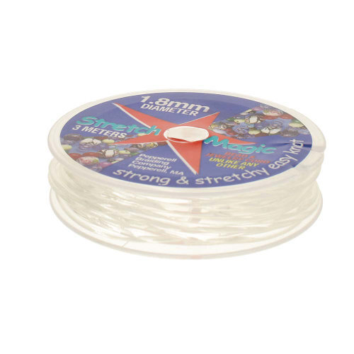Colour: Clear Code: SM18CL3 Thickness: 1.8mm Pack Size: 3m - Stretch Magic is the world’s best selling stretch jewelry cord and it’s no wonder why! Made of polyurethane, this string is strong, extremely durable, non-fraying, latex free and has a great elasticity and resiliency. Very easy to use, this stretchy cord is perfect for bracelet and necklace making, beaded jewelry and other DIY arts & crafts projects. To begin, start stringing embellishments on to the Stretch Magic. You can use pearls, gemstones, beads, crystals, charms, or other jewels. Thread until you’ve made a creation to your desired length. Knot the cord and snip off the extra string with scissors. For best results you may want to knot the cord a few times and reinforce the knot with some glue. We recommend tying off bracelets with a Carrick Bend, also known as a Josephine Knot. If you prefer, crimp the end of your jewelry. Use this cord to make seed bead bracelets, friendship bracelets or anklets. The stretchy material is great for so many applications. Stretch Magic is available in multiple thickness, different length spools and several colors. Choose from black, clear, pearl, sparkle silver and sparkle gold. Unlock your creativity and manipulate this superior thread to make jewelry pieces for your own collection or to add to someone else's jewelry accessories. Excellent for day camp, art classes, after school care, summer programs and more. These are easy for kids to use and make a great rainy-day project for the whole family. String beads along the stretch cord or use it to secure stones. This bendable thread is great for beginners and advanced jewelry makers alike because it is so versatile. Show someone how much you care by making a personalized statement bracelet or necklace. Handmade beaded jewelry pieces make great gifts for friends or loved ones for birthdays, Christmas, weddings, graduations, or other special occasions. Add this jewelry string to your crafting supplies today and unlock your artistic talents.