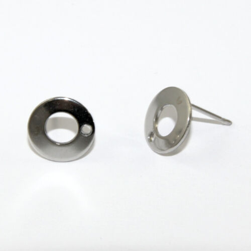10mm Round Cutout Plain Stud with hole - 304 Stainless Steel - 5 Pairs Add a modern touch to your jewelry creations with our Round Cutout Plain Stud with Hole, crafted from high-quality 304 stainless steel. Featuring a sleek circular cutout design, these studs offer a minimalist yet stylish look, perfect for both contemporary and classic designs. Designed for versatility, the small hole at the base allows for easy attachment of charms, beads, or dangles, giving you endless creative possibilities. Whether you're making delicate everyday earrings or bold statement pieces, these studs provide a sturdy and elegant foundation. Made from hypoallergenic and tarnish-resistant stainless steel, these studs are perfect for everyday wear and safe for sensitive skin. The backing is sold separately, so you can choose the ideal fit for your design.