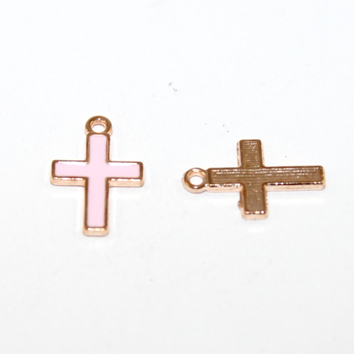10mm x 17mm Pink Pale Gold Enamel Cross - 2 Pieces Wearing a cross pendant serves as a visible symbol of one's belief in the redemption of man won by Christ's sacrifice on the cross and one of hope in life everlasting.
