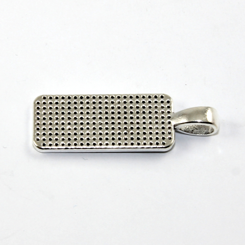 In StockA rectangle pendant setting with a bail designed to work with 10mm x 25mm cabochons. You can use your own print or photo with a clear cabochon dome, use a resin or glass cabochon on range. For those feeling inspired this settings is suitable for use with crystal clay. These pendants are made from Zinc Alloy and plated in Platinum.