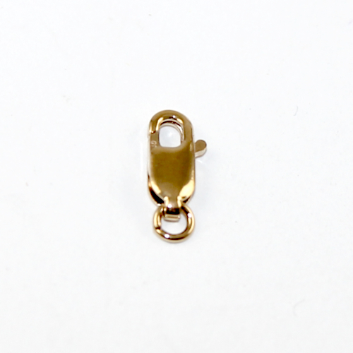 10mm x 4mm 14KT Gold Filled Flat Oval Lobster Clasp A lobster clasp also known as a lobster hook, or parrot clasp, it is a fastener that is held closed by a spring. The lobster clasp is opened or closed by holding a small lever, usually with a fingernail, long enough to apply, then it is attached (or removed from) a short link-chain, end tag or a ring. Lobster clasps are often used for necklaces, bracelets, and keychains. Lobster clasps are named as such because of their "pinching" mechanism, and they are often shaped like a lobster's claw.