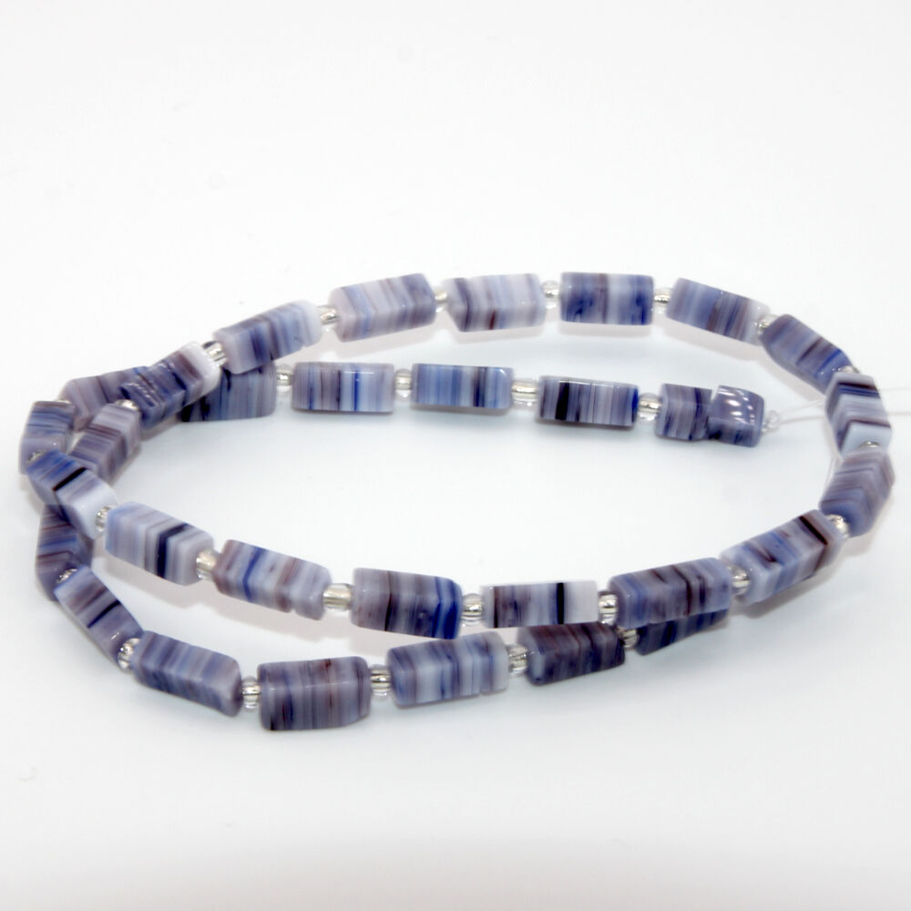 10mm x 4mm Blue Handmade Rectangle Lampwork Glass Tubes - 38cm Strand