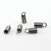 Greek spring cord ends add both security and decorative detail to jewellery designs. Featuring a distinctive coiled wire design wrapped around the cord, these findings offer a stylish way to finish leather, suede, and thicker woven cords. The spiral “spring” section grips the cord firmly when attached—often with a combination of gentle compression and adhesive—creating a strong and reliable hold. Popular in bracelet and necklace designs, Greek spring cord ends provide a more ornate alternative to standard caps. Their elegant, classical-inspired look pairs beautifully with both rustic leather pieces and more refined, layered creations. Once secured, the attached loop makes it easy to add a clasp, jump ring, or extender chain for a professional finish. Available in a variety of sizes and metal tones, Greek spring cord ends are ideal for adding texture and visual interest while ensuring durability. They are a practical yet decorative component that elevates handmade jewellery with a timeless, artisan feel. 10mm x 4mm Greek Spring - 304 Stainless Steel
