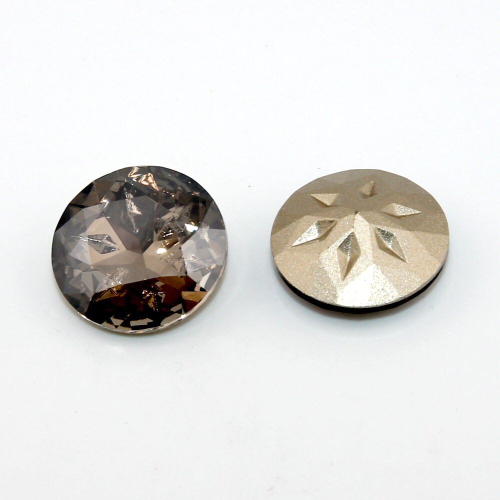 Size : 18mm Colour : Satin Rivoli stands for simplicity and elegance. The sharp lines of this cut form a geometric pattern with high-precision faceting that results in a subtle yet clear brilliance. Its elegant appeal make the Rivoli Round Stone a true classic that works both in simple and intricate design pieces. With its modern yet distinctive sparkle, the Rivoli Round lends a certain level of sophistication to every look. This stone is perfect to use in hand sewing / weaving designs, capturing in filagrees / wire wrapping, setting in crystal / metal / polymer clay. These stones are made from glass with a foil backing, we recommend that you seal the foil backing prior to use.