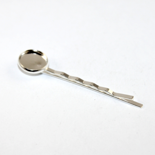 In StockCreate your own stylish bobby pin with a 12mm cabochon. You can use your own print or photo with a clear cabochon dome, use a resin or glass cabochon on range. For those feeling inspired this settings is suitable for use with crystal clay. These bobby pins are made from Copper and plated in Silver.