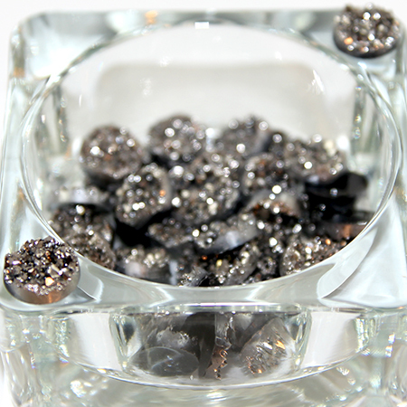 Use this spiky "druzy" style 12mm cabochon in a variety of different settings to create your own unique pieces. The size of this silver night piece is 12mm x 12mm.