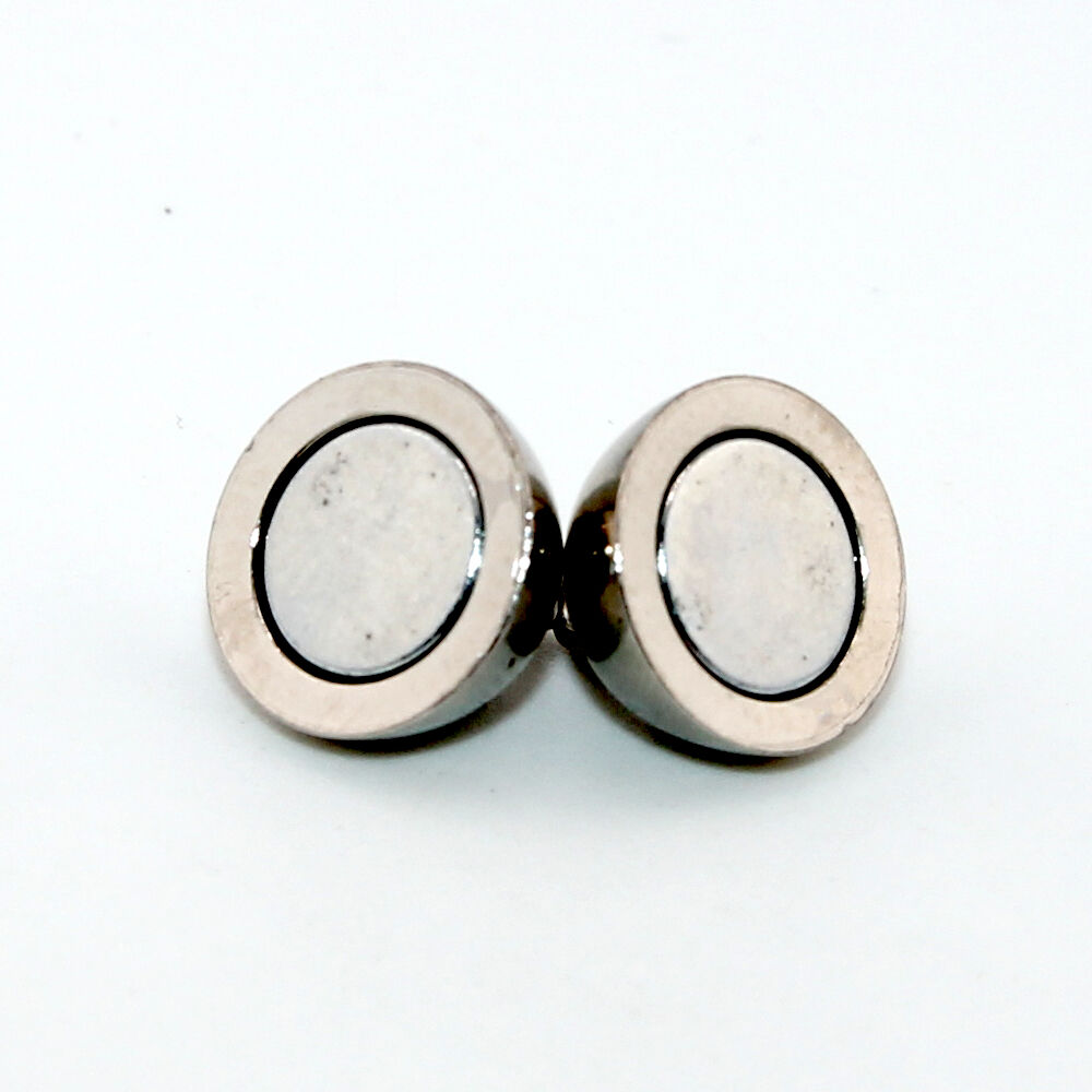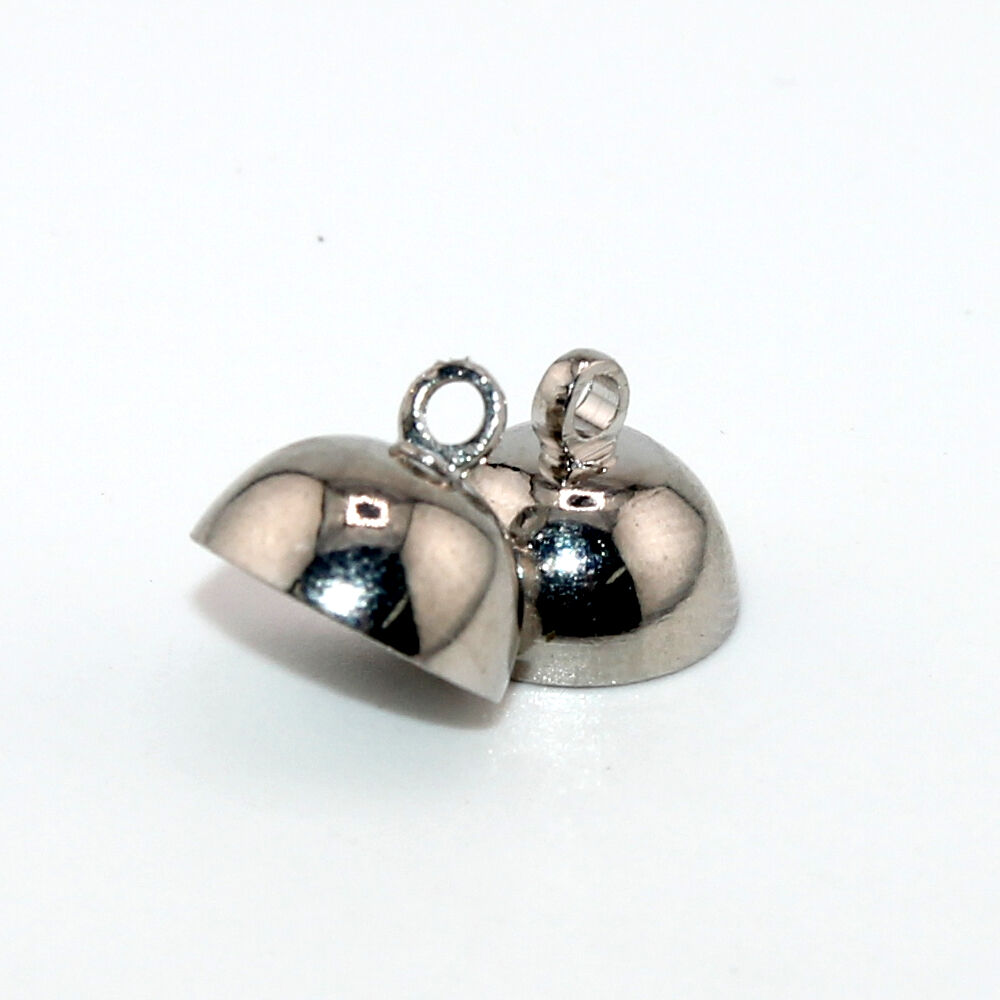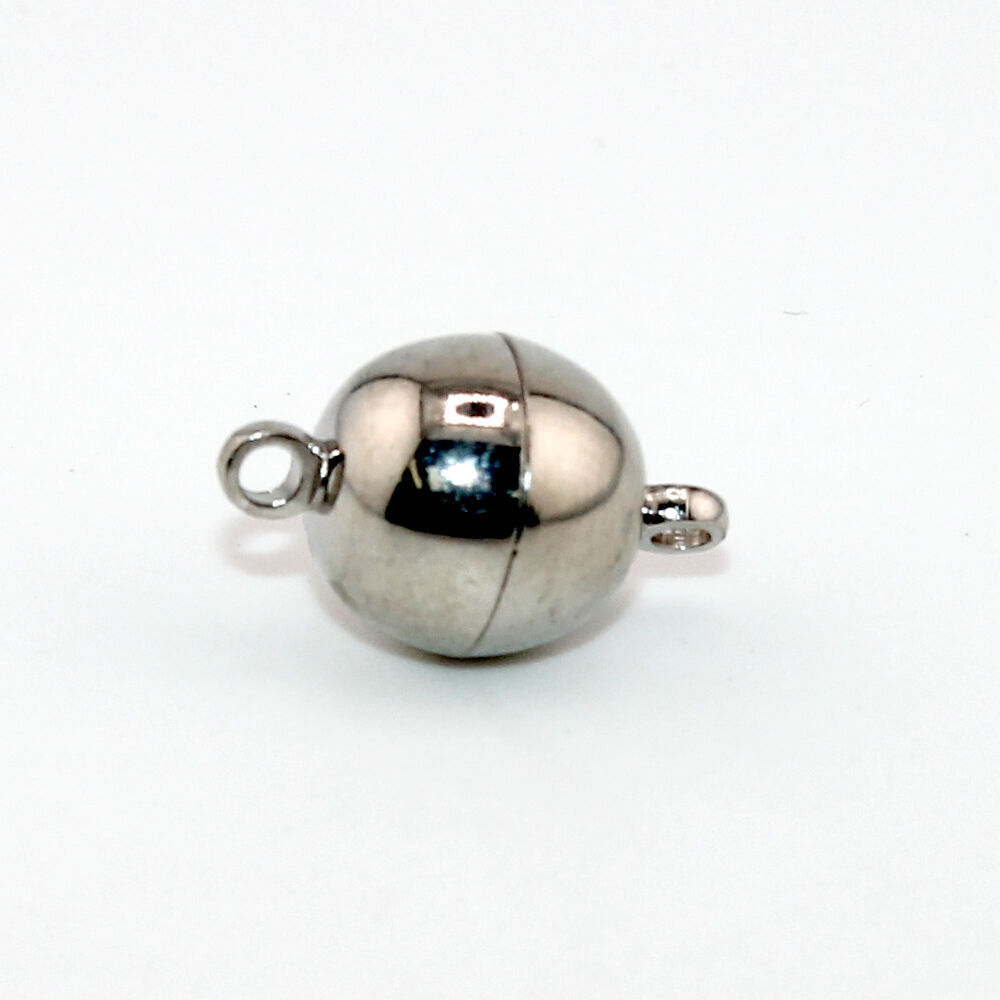 A 12mm plain round shaped single strand magnetic clasp, with a Platinum plate finish, measuring 12mm x 18.5mm with 2 x 2.2mm holes and is lead, nickel & cadmium free.