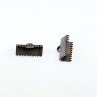 Ribbon crimps or choker clasps are used when working with woven fabrics or leather. They can also be used with handsewn pieces. This crimp is 13mm wide and is made from Zinc Alloy and has been plated in Gunmetal.