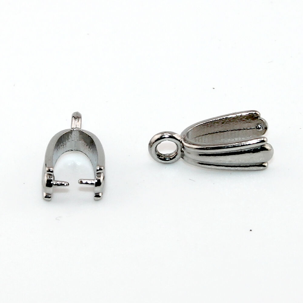 These pinch bails gently closes around the top-drilled hole of a pendant, crystal or focal bead. Small internal prongs grip securely when pressed into place, holding your feature bead firmly while keeping the attachment discreet. Crafted from stainless steel, these bails are durable, tarnish-resistant and ideal for everyday jewellery. Stainless steel is known for its strength and long-lasting shine, making it a reliable choice for frequently worn pieces. It is also a popular option for customers seeking hypoallergenic-friendly materials. 14.5mm x 4.8mm 304 Stainless Steel Pinch Bail 14.5mm x 4.8mm with 0.8mm Pins and a 2mm Hole