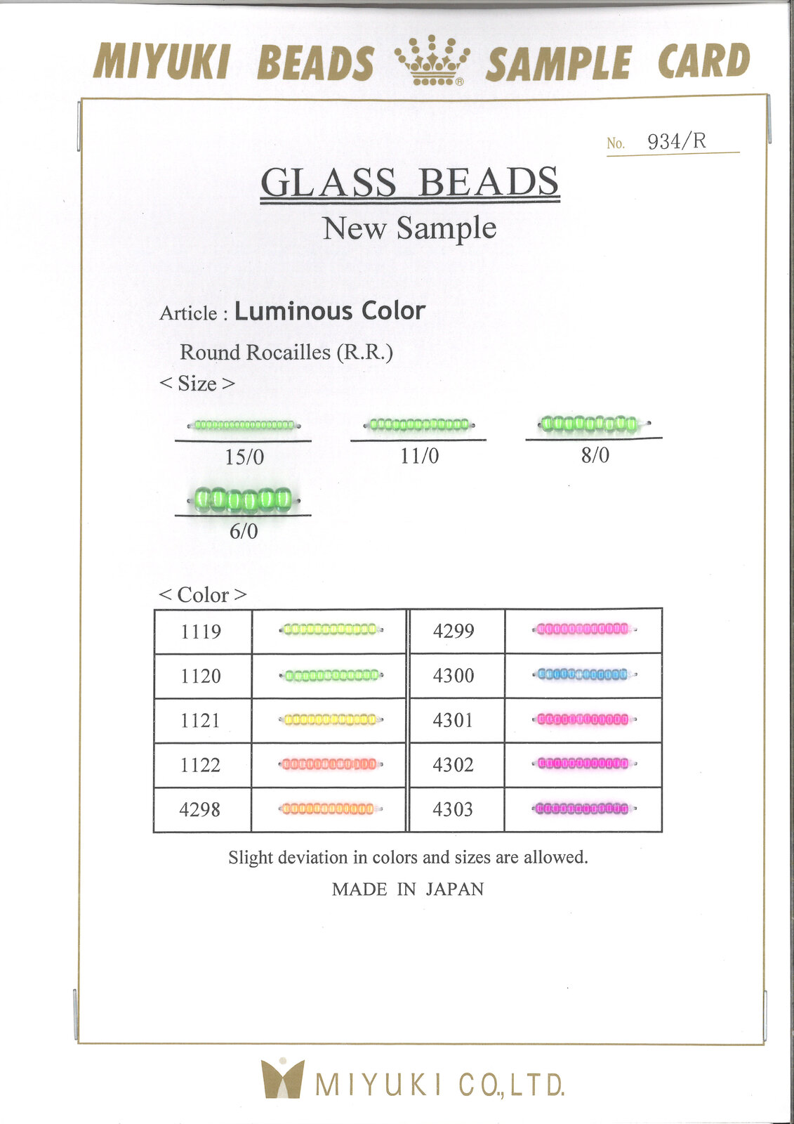 Miyuki 15/0, 11/0, 8/0 & 6/0 Round Luminous Colour Chart