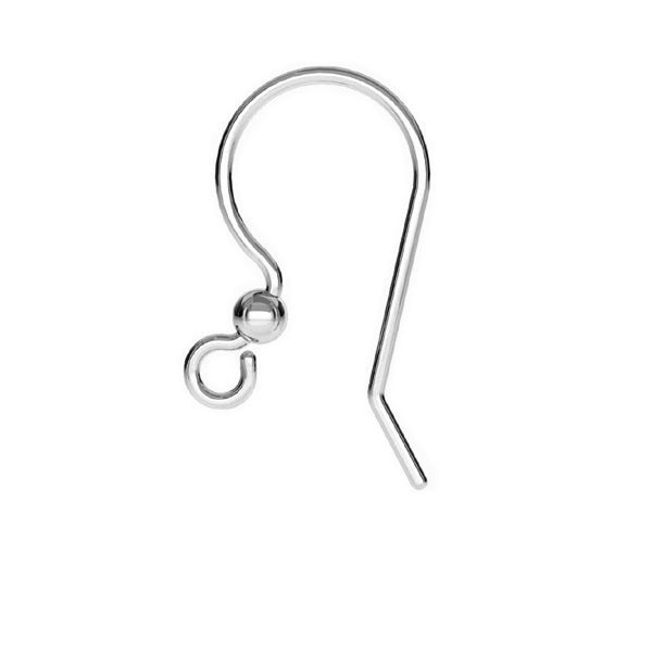 A classic french hook with a ball detail, manufactured from 925 Sterling Silver in Europe. Each hook measures 17.5mm x 10.5mm x 0.8mm. This piece has been plated in Platinum using a primer and final coat process.