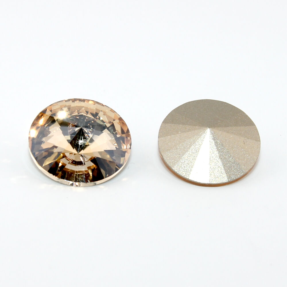 Style - Rivoli 1122 Size - 18mm Colour - Golden Shadow Rivoli stands for simplicity and elegance. The sharp lines of this cut form a geometric pattern with high-precision faceting that results in a subtle yet clear brilliance. Its elegant appeal make the Rivoli Round Stone a true classic that works both in simple and intricate design pieces. With its modern yet distinctive sparkle, the Rivoli Round lends a certain level of sophistication to every look. This stone is perfect to use in hand sewing / weaving designs, capturing in filagrees / wire wrapping, setting in crystal / metal / polymer clay. These stones are made from glass with a foil backing, we recommend that you seal the foil backing prior to use.