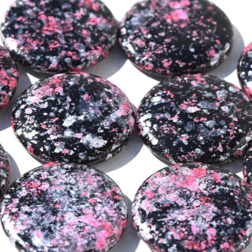 18mm Low Profile Czech Glass Cabochon - Jet-Tweedy Pink - 23980-45708 - 2 Pieces