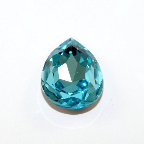Style - Pear Drop 4320 Size - 18mm x 25mm Colour - Aquamarine The shape of the Pear Stone, with its array of colors and effects, is timeless and can be used for virtually any design and a variety of application possibilities. This stone is perfect to use in hand sewing / weaving designs, capturing in filagrees / wire wrapping, setting in crystal / metal / polymer clay. These stones are made from glass with a foil backing, we recommend that you seal the foil backing prior to use.