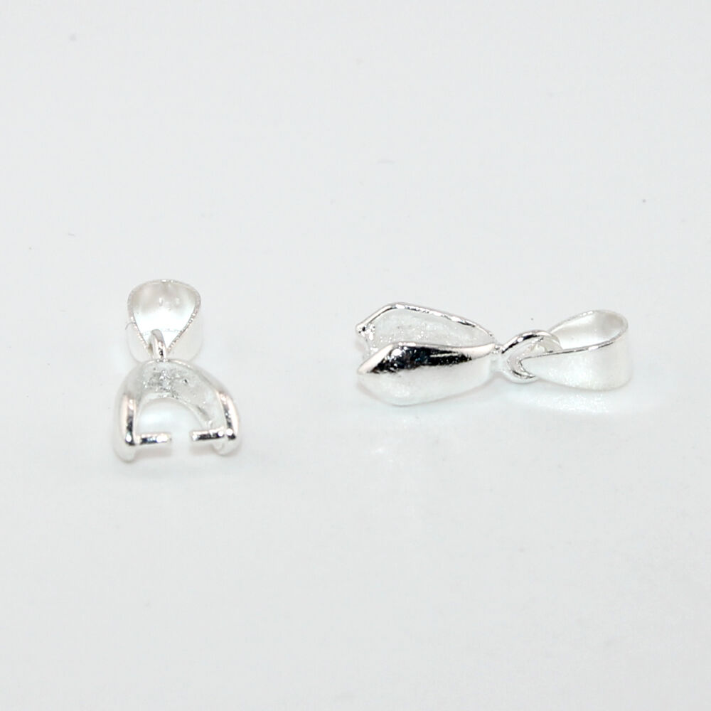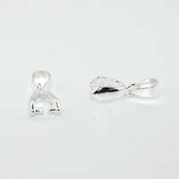 Pinch bails are used for top-drilled beads to create a dangle for necklace or earrings. They are easy to use and functional for jewelry-making. Pinch bails have two prongs at the bottom which will insert into the hole of your top drilled bead. Gently pinch the bail to close. The Pinch Bail hanger has a bail on top of the hanger which enables you to hang it from a chain or cord necklace easily. This Pinch Bail with Hanger is 19mm x 7mm and is made from Copper with a Silver plate finish. 19mm x 7mm Pinch Bail with Hanger - Silver
