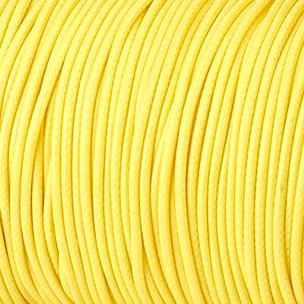 Waxed Cotton Cord is a great alternative for leather in knotting and braiding projects or designs. Waxed Cotton Cord is colourfast and easy to knot, cut and loop which makes it great to use in a number of different beading projects. Korean Waxed Cotton Cord has a higher wax content so the ends easily melt. 1mm Yellow Korean Waxed Cotton Cord