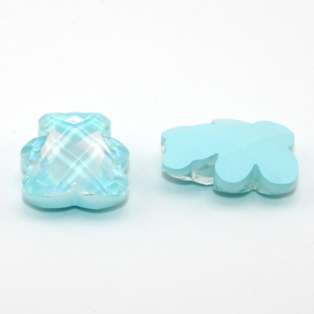 20mm x 25mm Bear Faceted Stone - Aquamarine Opal AB Lacquer Add a touch of sparkle and sweetness to your creations with this adorable faceted glass bear stone. Measuring 20mm x 25mm, this beautifully cut piece captures the charm of a teddy bear in shimmering glass, with precise facets that catch and reflect light from every angle. Perfect as a feature element in pendants, brooches, or decorative designs, it brings a playful yet elegant touch to your work. Ideal for bead embroidery, costume accents, or statement jewellery, this delightful bear combines quality craftsmanship with whimsical appeal—making it a must-have piece for collectors and designers who love unique, sparkling details.