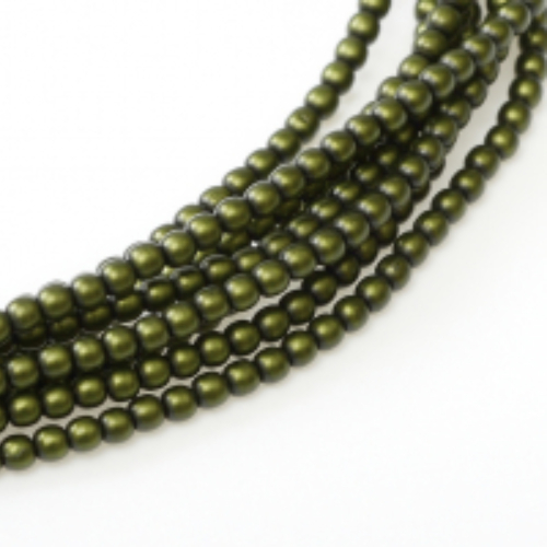 2mm Czech Glass Pearl - 150 Bead Strand - Matte Olive Satin - 75958