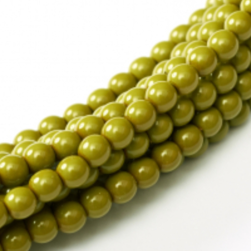 2mm Czech Glass Pearl - 150 Bead Strand - Pea Green - Shiny - 48565