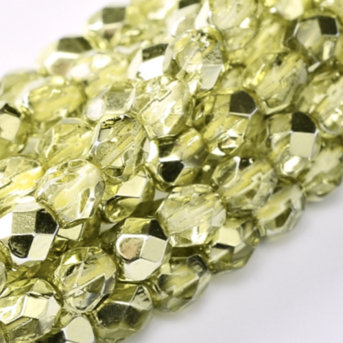 2mm Fire Polish Bead - Crystal Lime Metallic Ice - 00030-67813 - 50 Piece Bag