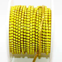 Add Sparkle to your designs or seed bead embroidery with this brass cupchain. 2mm - SS6.5 Rhinestone Cupchain - Yellow Neon with Yellow - sold in 10cm increments