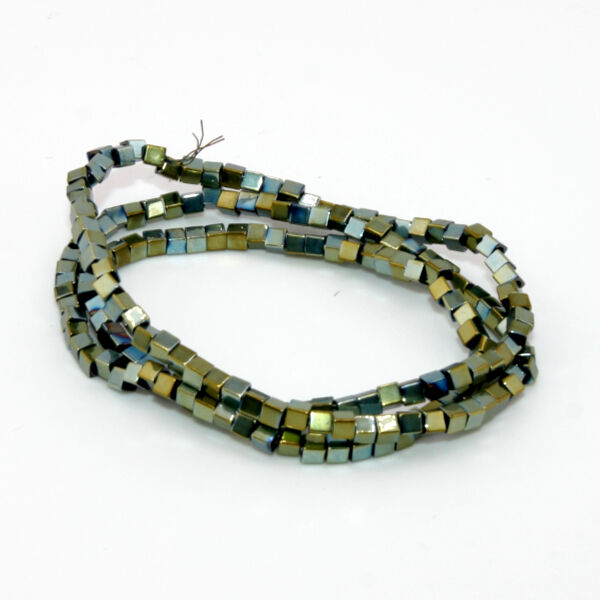 2mm x 2mm Green Plated Cube Hematite Beads - 35cm Strand