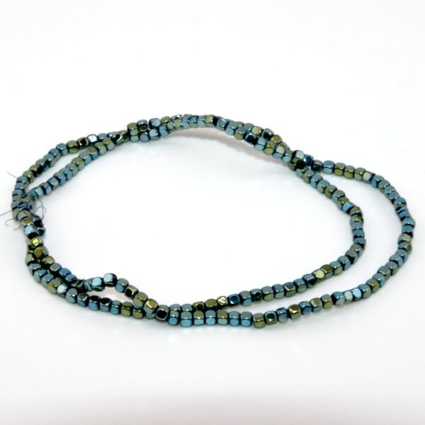 2mm x 2mm Green Plated Rounded Hematite Cube Beads - 35cm Strand