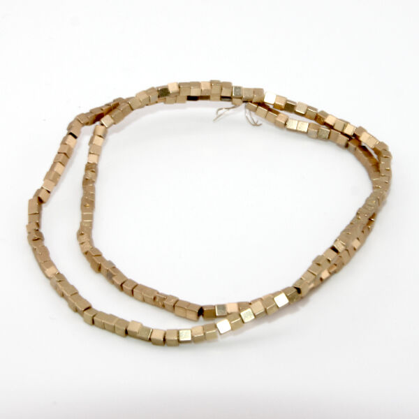 2mm x 2mm Matte Gold Plated Cube Hematite Beads - 35cm Strand