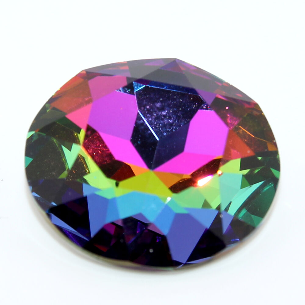 Style - Flat Chaton 1201 Size - 35mm Colour - Volcano The outstanding precision of the Flat Chaton comes from its intricate cut, which features multiple facets. Thanks to its superior cut and classic appeal, it fits perfectly into compact and high-grade designs—for example, in the jewelry segment. This stone is perfect to use in hand sewing / weaving designs, capturing in filagrees / wire wrapping, setting in crystal / metal / polymer clay. These stones are made from glass with a foil backing, we recommend that you seal the foil backing prior to use.