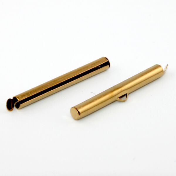 Slide ends enable you to quickly turn your brick stitch or loom piece into a finished wearable piece, made from 304 Stainless Steel with a gold plated finish. 35mm Slide Connector - 304 Stainless Steel - Bright Gold