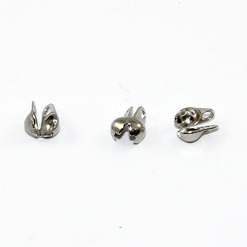 Just like the calottes, the clamshell is designed to cover knots and provide an ending to be used with jump rings. Unlike the calotte, the clamshell can be added after the piece has been finished and can also be added to the ends of ball chain to provide an ending to be used with jump rings. We recommend that you glue the clamshell in place over a knot or the ball chain to keep it securely in place. Each clamshell is 5mm x 3mm with 0.9mm holes and can accomodate up to 2.4mm ball chain.