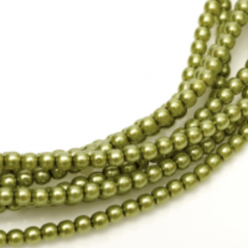 3mm Czech Glass Pearl - 150 Bead Strand - Green Apple - Shiny - 10158