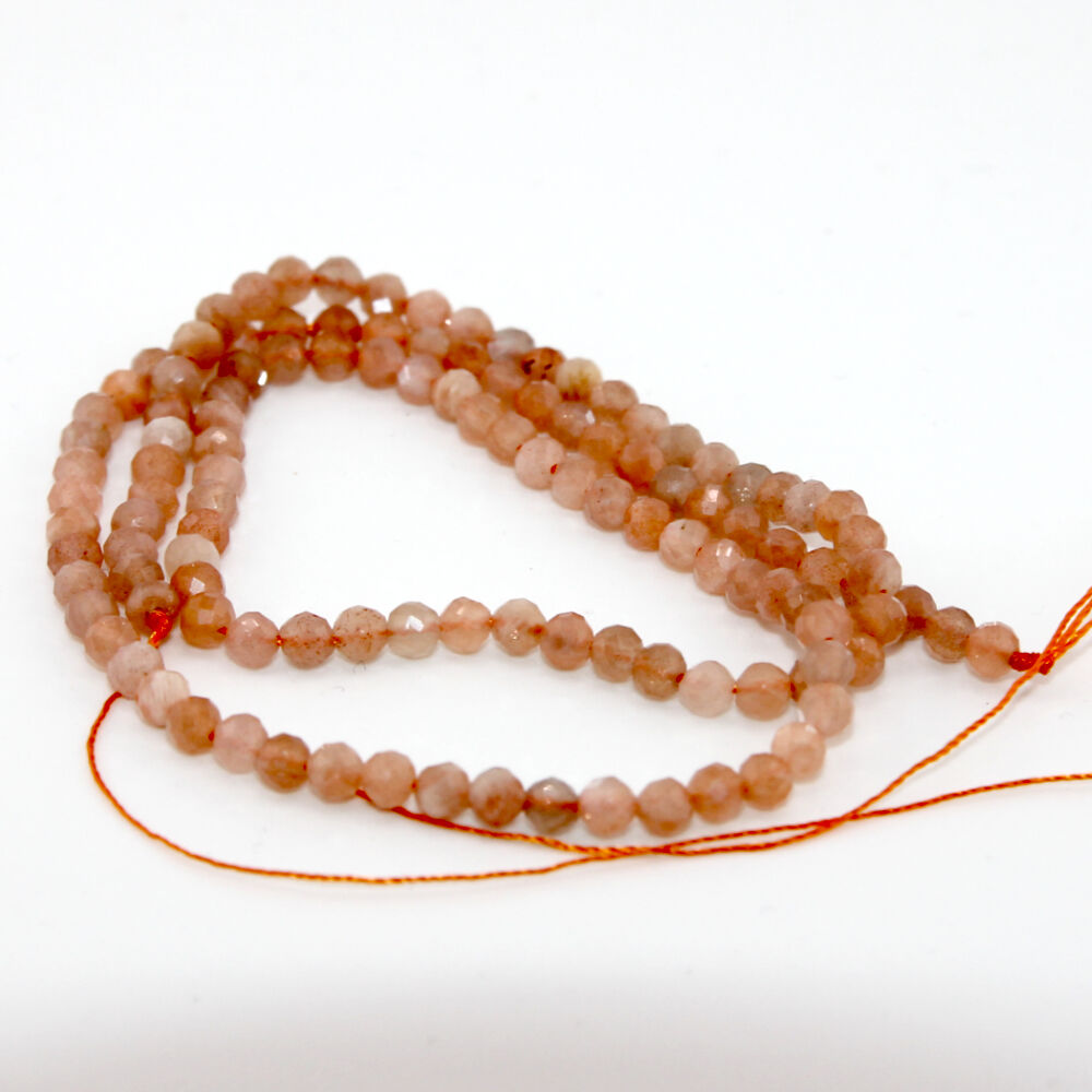 3mm Faceted Sunstone Round Beads - 36cm Strand Sunstone, a radiant gemstone, derives its name from the sun due to its dazzling appearance. It embodies the warmth and energy of sunlight, symbolizing optimism, vitality, and joy. This gemstone inspires creativity and leadership, infusing its wearer with the courage to pursue their passions. Sunstone is associated with personal power and abundance, encouraging success and abundance in all aspects of life. It represents a connection to the divine and a source of enlightenment, illuminating one's path. With its glittering inclusions resembling the sun's rays, Sunstone serves as a constant reminder of the bright possibilities that await, making it a cherished talisman for those seeking a positive outlook and personal growth.