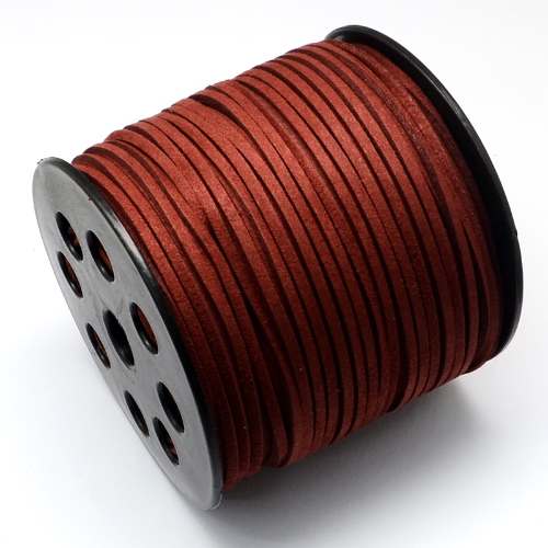 Faux Suede cord is a versatile material for necklaces, pendants, and tassels. This Brick Red cord is 3mm wide and 1.4mm thick. It is sold in 10cm increments or in a 90m roll. The 90m roll will be ordered in as required and is subject to availability.