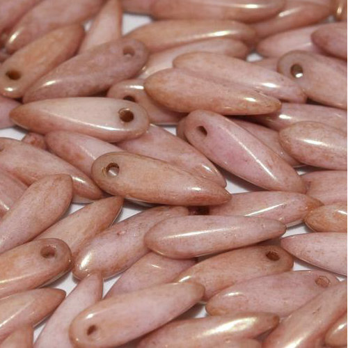 Get straight to the point of popular bead-weaving and stringing designs with these versatile, Czech pressed glass daggers. Used as dangles, drops and flower petals when grouped together, these sleek beads add intriguing options to your designs. These dagger shaped beads are side-drilled at the top.