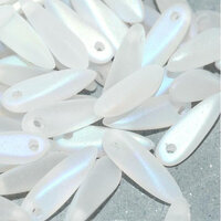 Size: 3mm x 11mm Hole: 0.8mm Colour: Crystal Full AB Matted - 00030-28773 Get straight to the point of popular bead-weaving and stringing designs with these versatile, Czech pressed glass daggers. Used as dangles, drops and flower petals when grouped together, these sleek beads add intriguing options to your designs. These dagger shaped beads are side-drilled at the top.