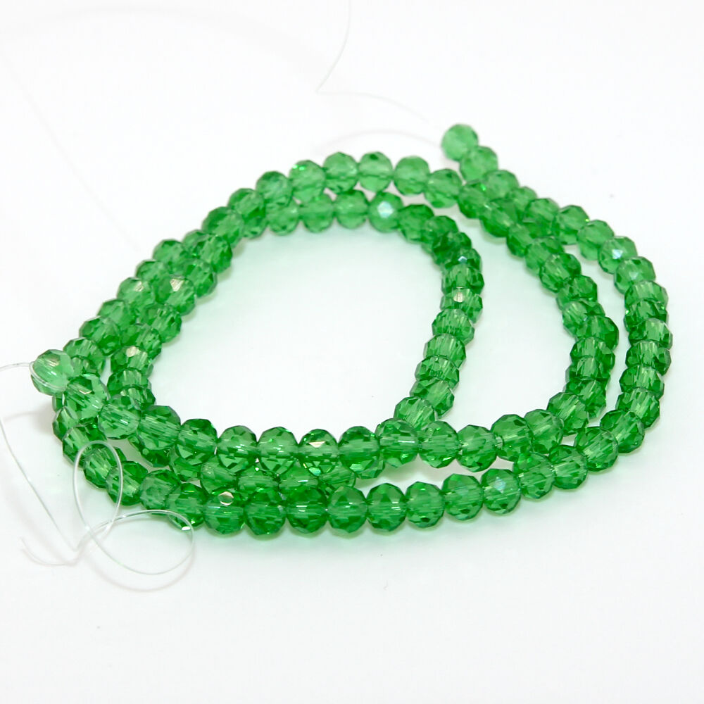 Rondelles are a versatile bead which can be used as a spacer in between larger beads or on their own to make an impact. These transparent Green glass rondelles are 3mm x 4mm with a 0.4mm hole.