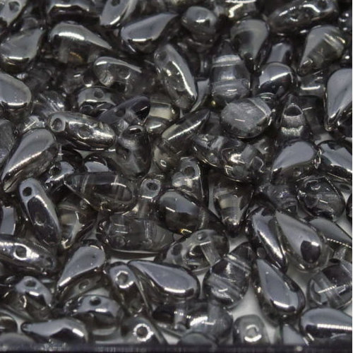 Size: 3mm x 6mm Hole: 1mm Colour: Crystal Chrome - 00030-27401 The Drop Duo is a rounded teardrop-shaped bead with a pointed top, they are 3mm x 6mm with 2 x 0.8mm holes. These beads are great to use to create heart & flower shapes or as a fringe bead in your bead weaving design. These beads are available in a bag of 30 or 600.