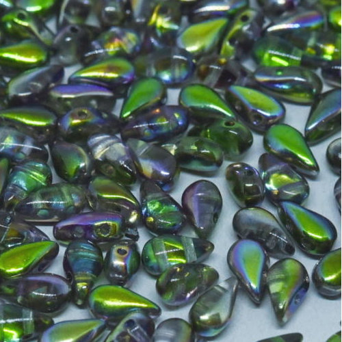 Size: 3mm x 6mm Hole: 1mm Colour: Crystal Magic Orchid - 00030-95000 The Drop Duo is a rounded teardrop-shaped bead with a pointed top, they are 3mm x 6mm with 2 x 0.8mm holes. These beads are great to use to create heart & flower shapes or as a fringe bead in your bead weaving design. These beads are available in a bag of 30 or 600.