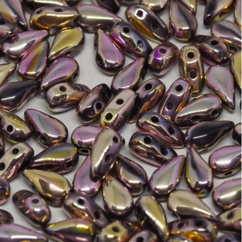 Size: 3mm x 6mm Hole: 1mm Colour: Jet Capri Rose Full - 23980-27143 The Drop Duo is a rounded teardrop-shaped bead with a pointed top, they are 3mm x 6mm with 2 x 0.8mm holes. These beads are great to use to create heart & flower shapes or as a fringe bead in your bead weaving design. These beads are available in a bag of 30 or 600.