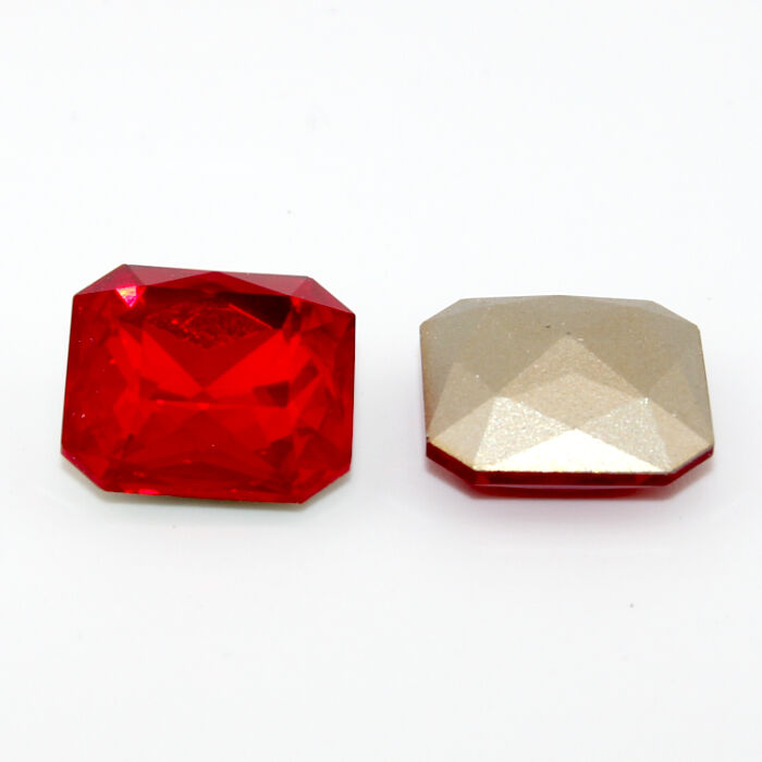 Size : 18mm Colour : Light Siam Light Siam The Square Octagon owes its enhanced brilliance to the many facets that interweave and angle upward towards the flat, square top. Perfect for sleek designs, the classic and modern shape makes a superb jewelry centerpiece, while also working well as part of a more intricate design. This stone is perfect to use in hand sewing / weaving designs, capturing in filagrees / wire wrapping, setting in crystal / metal / polymer clay. These stones are made from glass with a foil backing, we recommend that you seal the foil backing prior to use.