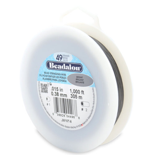 The highest quality wire, Beadalon 49 Strand consists of 49 smaller wires stranded together and nylon-coated for the best flexibility. It is the preferred wire for professional designers who demand premium strength, softness, and flexibility. - 49 Strand Stainless Steel Bead Stringing Wire - .015 in (0.38 mm) - 1000 ft (305 m) - Bright - JW10T-8
