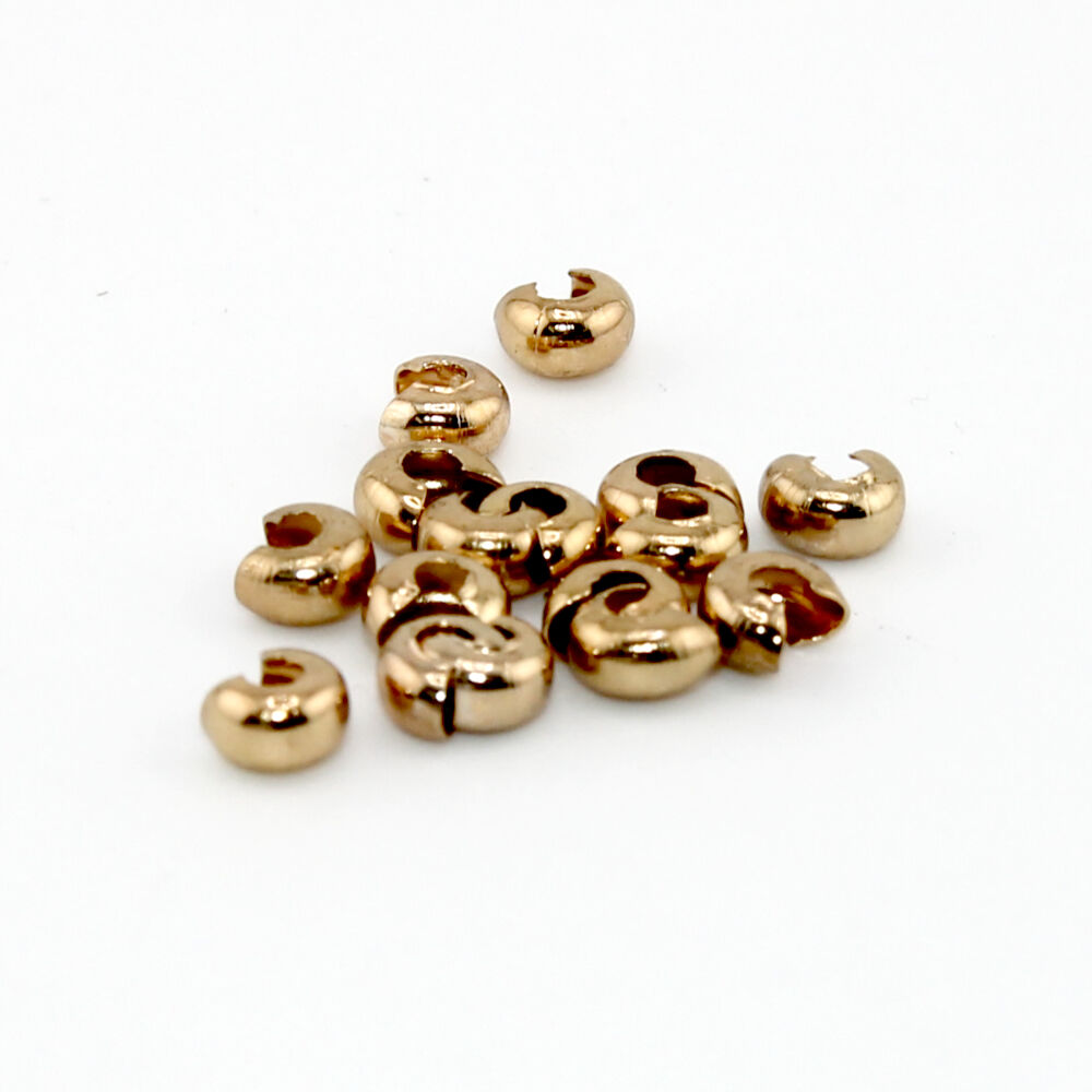 4mm Bright Gold 304 Stainless Steel Crimp Cover - 10 Piece Bag Give your jewelry a polished, professional finish with our 3mm 304 Stainless Steel Crimp Covers. Designed to neatly hide flattened crimp beads, these handy components snap over the crimp to create the look of a smooth, round bead. Made from durable 304 stainless steel, they are resistant to tarnish, rust, and wear, ensuring your designs stay beautiful for years to come. Their sleek metallic finish blends effortlessly with a wide range of beads and findings, making them a versatile choice for any project. Perfect for necklaces, bracelets, or anklets, crimp covers add that final touch of refinement and elegance to your handmade creations.