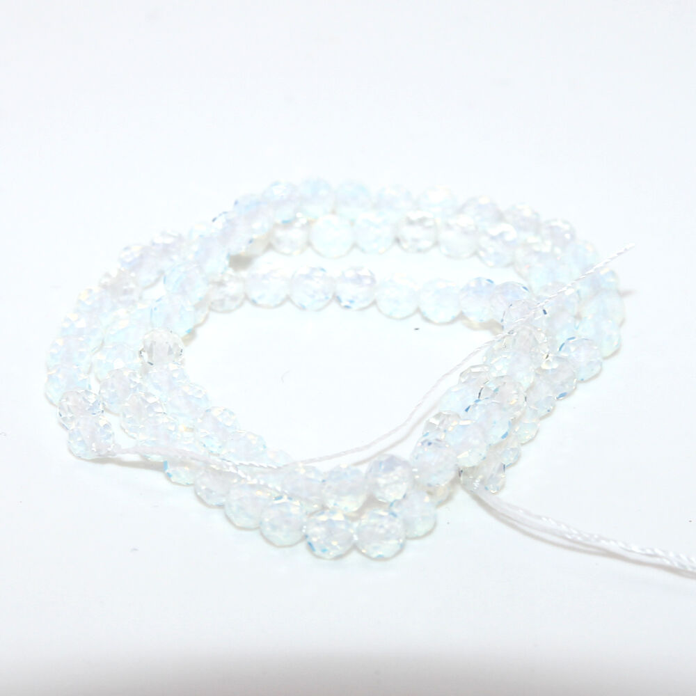4mm Faceted White Opalite Round Beads - 36cm Strand White opal is associated with inspiration, passion, love, and eroticism, by which people can free their imagination and creativity, release negative energy and improve human memory. White opal is strongly associated with the brow and sacral chakra and will make a great help for people who used to bottle up their feeling to be more expressive and release the stress inside their minds.