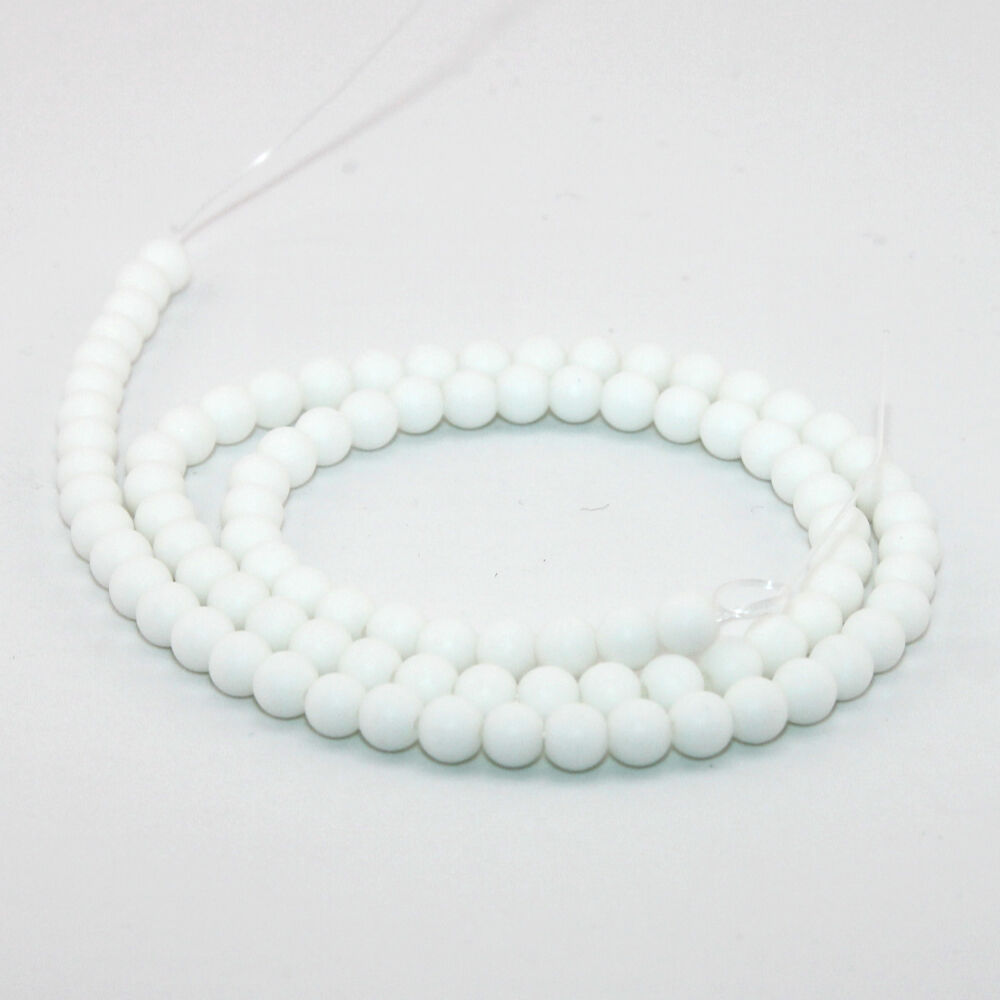 4mm Matte White Onyx Round Beads - 38cm Strand White Onyx, a luminous variety of chalcedony, holds both aesthetic allure and symbolic significance. Its pristine white hues symbolize purity, clarity, and new beginnings. Revered throughout history as a stone of protection and balance, White Onyx is believed to absorb negative energy and promote emotional harmony. Its connection to the crown chakra is said to enhance spiritual insight and aid meditation. This stone's timeless elegance, coupled with its alleged metaphysical properties, makes White Onyx a favored choice for jewelry and energy work, guiding individuals towards a state of serenity, clarity, and alignment with their higher selves.