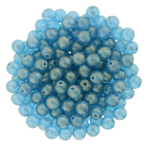 4mm Sueded Gold Capri Blue - Round Beads - 100 Bead Strand - 5-04-MSG6008