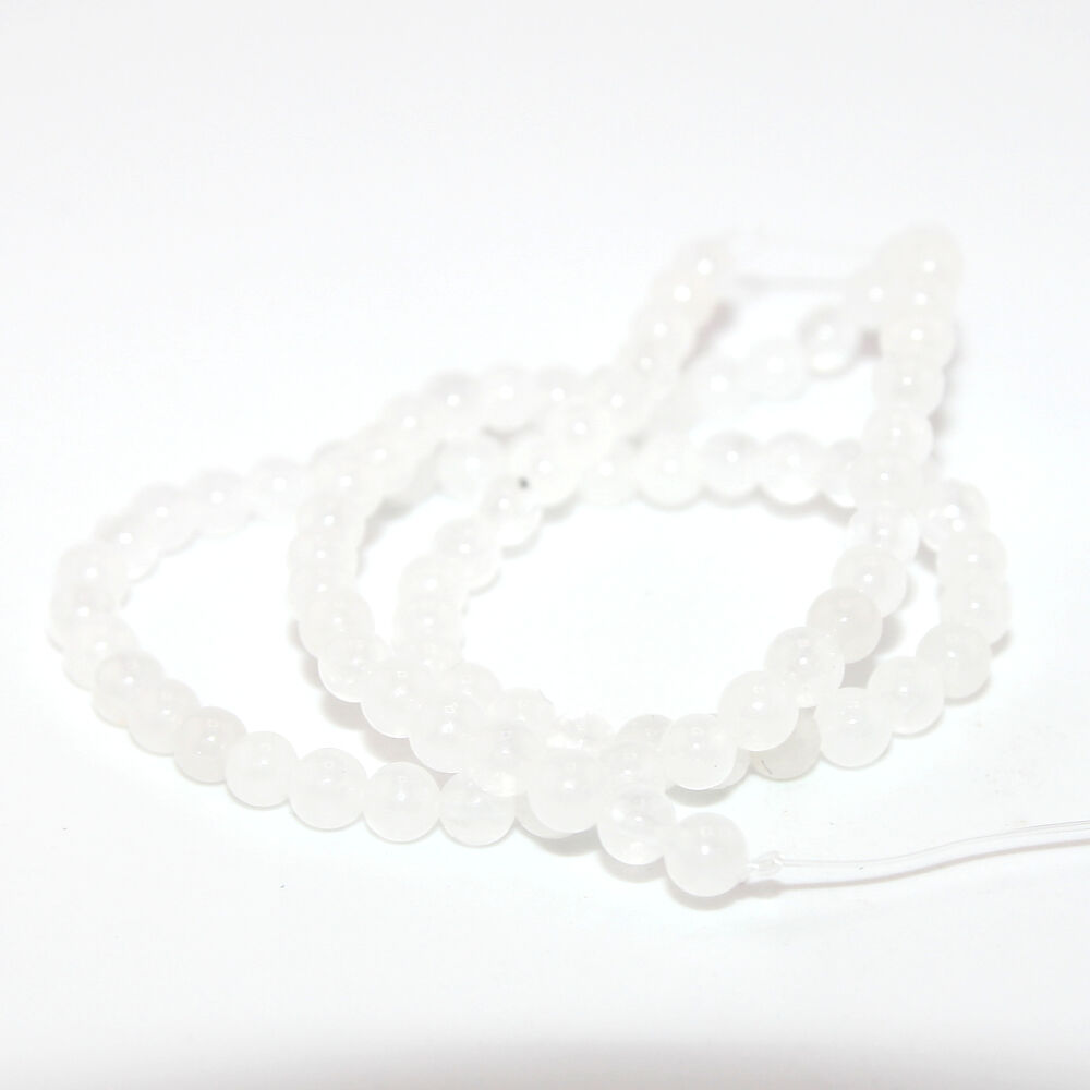 4mm White Jade Round Beads - 38cm Strand White Jade, a mesmerizing and coveted gemstone, captivates with its luminous, milky appearance. A variety of the mineral jadeite, this stone is revered for its pure, snowy hue, radiating tranquility and purity. It exudes an ethereal elegance, reminiscent of untouched snowdrifts or delicate lily petals. Beyond its aesthetic charm, white jade possesses deep spiritual significance in various cultures, symbolizing harmony, wisdom, and serenity. This gemstone's smooth texture and gentle translucency make it a favored choice for crafting exquisite jewelry and ornate carvings. White Jade remains a timeless emblem of grace and balance, a cherished gemstone in the world of natural beauty and mysticism.