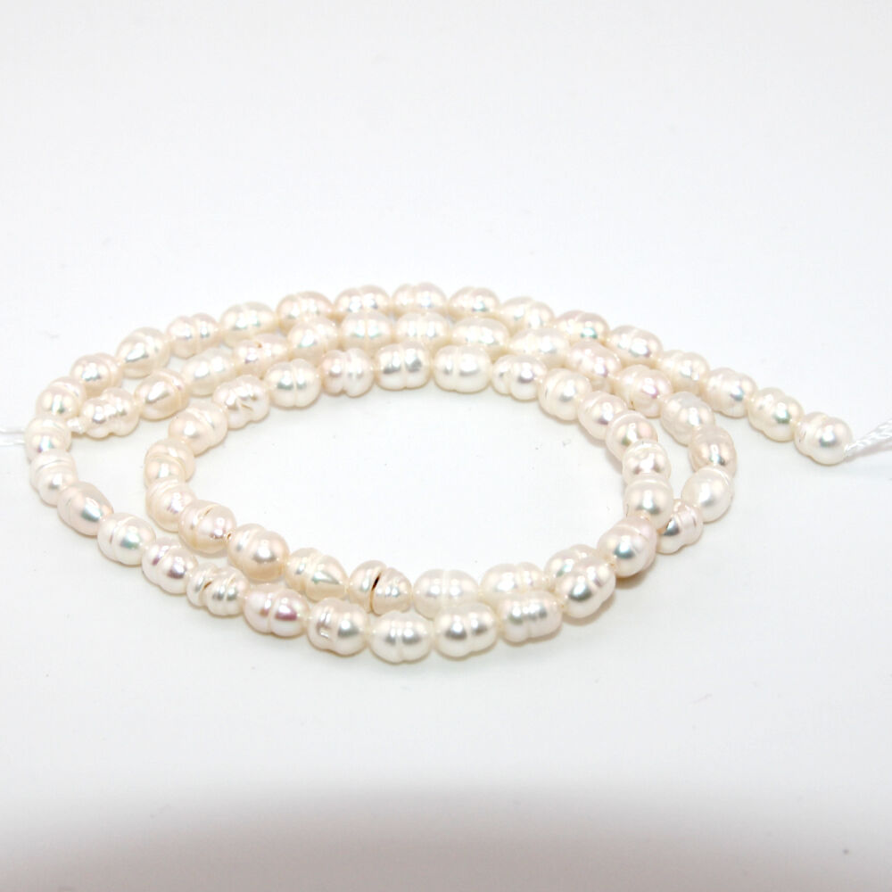 4mm x 6mm White Rice Freshwater Pearl - 35cm Strand