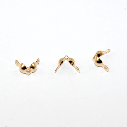Calottes feature a threading hole are designed to provide a connection for stringing materials, once you have crimped or knotted your strining material, simply fold the calotted in half and thread a jump ring through the two holes to connect clasps or end tags. The calotte is made from Zinc Alloy measures 4mm x 7mm with a Pale Gold finish.